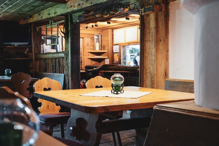 Auf der typisch tirolerischen Speisekarte der Brugger-Alm findet man neben dem Herbstgericht 2024, dem Moosbeerschmarrn, auch Tiroler Gröstl, Forellen geräuchert oder als Müllerinnen Art - und gebackenen Ziegenkäse. Der Ziegenkäse kommt direkt aus eigener Herstellung, der Senior melkt die Ziegen und verarbeitet die Milch zu Käse weiter, der sowohl auf der Speisekarte als auch im eigenen Hofladen zu finden ist.