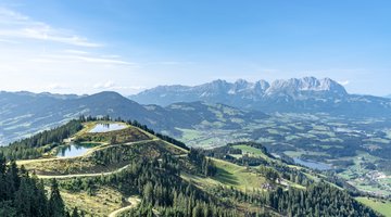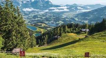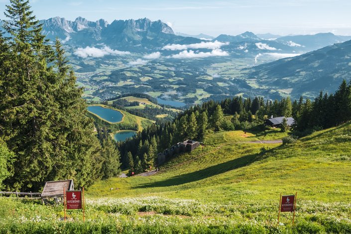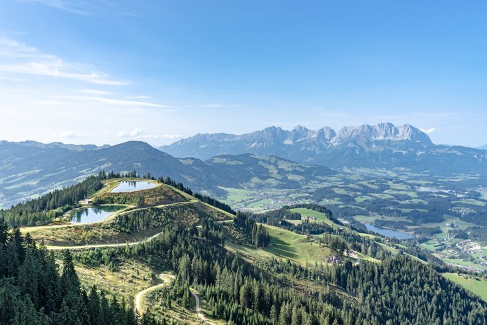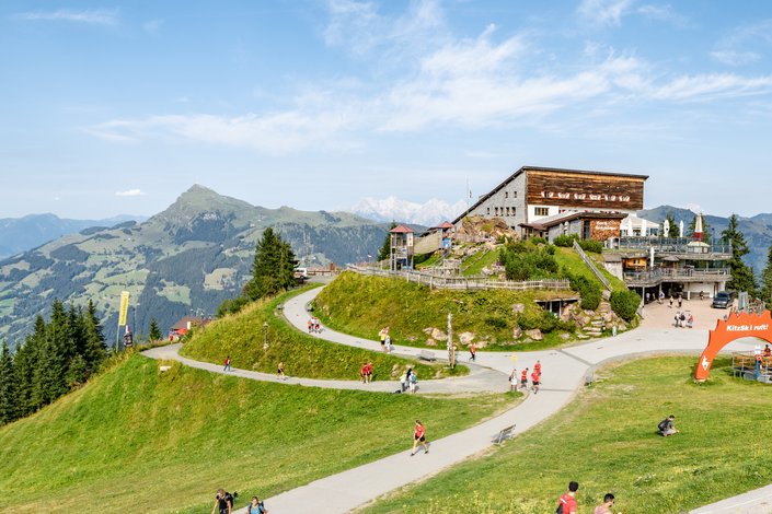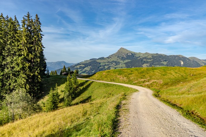 Zahlreiche Wanderwege – von gemütlich bis anspruchsvoll – führen über den Kamm, vorbei an urigen Hütten, blühenden Almen und immer wieder mit herrlichen Panoramen auf das Kitzbüheler Horn, das Kaisergebirge oder die Hohen Tauern.