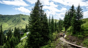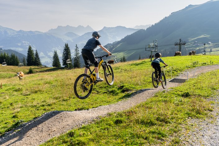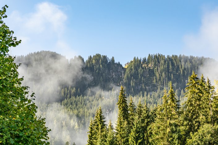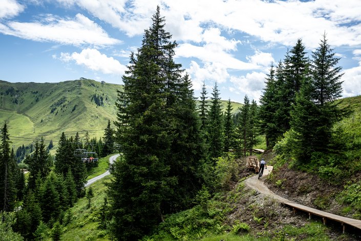 Auch Mountainbiker und E-Biker kommen am Hahnenkamm auf ihre Kosten. Flowige Trails, und knackige Anstiege bieten für jedes Level das passende Terrain. Die moderne Hahnenkammbahn bringt Wanderer und Biker bequem auf den Berg – wer es sportlich mag, startet direkt im Tal.