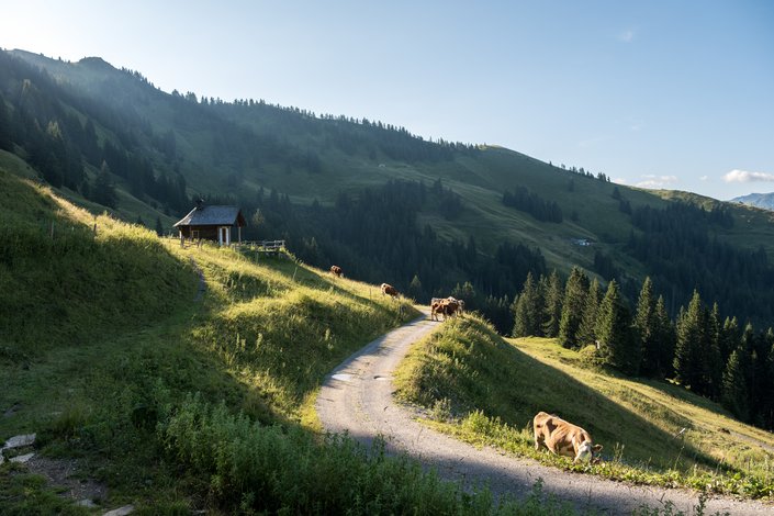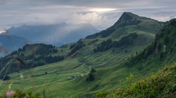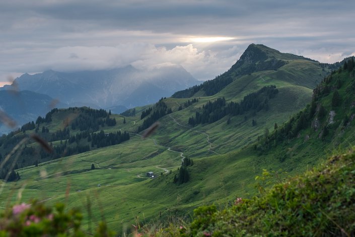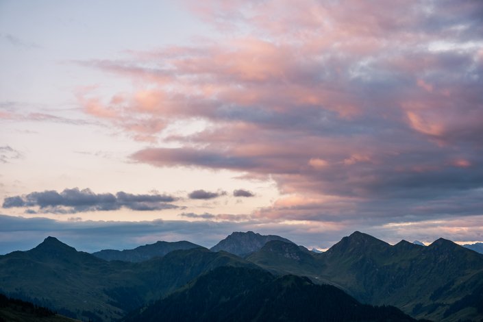 Wenn Tau in den Gräsern glänzt und die Welt still ist, als würde sie für einen Augenblick innehaltend lauschen. Von der Bichlalm bis zum Schütz ziehe ich mich dahin, weich, weit und voller Geheimnisse. Wer ich bin, die sanften Kitzbüheler Südberge.
