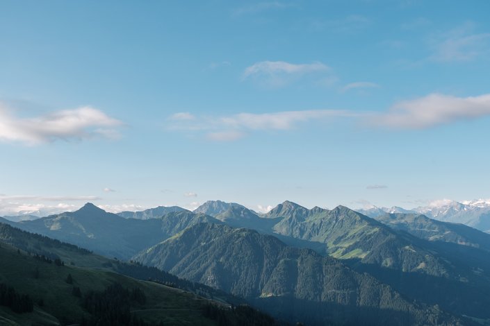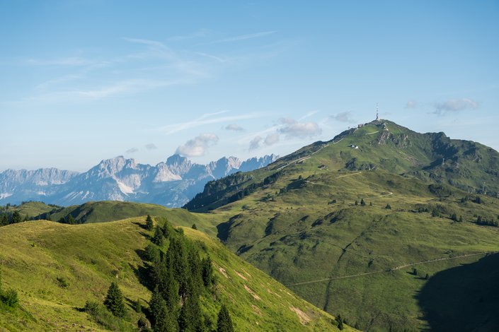 Die Kitzbüheler Südberge sind der sanfte, sonnige Gegenspieler zu den schroffen Gipfeln der Hohen Tauern und der Zillertaler Alpen. Südlich von Kittzbühel gelegen, prägen sie die Region mit ihren grünen Grashängen, weiten Almen und aussichtsreichen Gipfeln. Charakteristisch sind die abgerundeten Formen aus Schiefergestein, die eine freundliche, leicht zugängliche Landschaft schaffen – ein Paradies für Naturliebhaber.