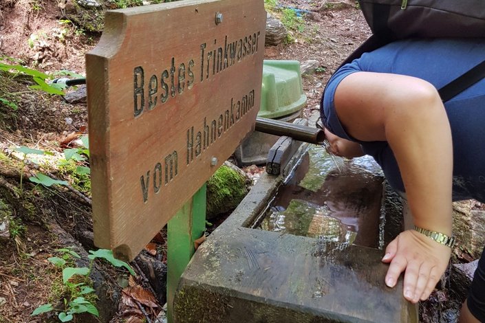 Auf dem Weg haben wir das Kitzbüheler Quellwasser verkosten können und es steht unserem (Berchtesgadener Quellwasser) in nichts nach. Nach einer Stärkung sind wir dann die Streif nach unten gegangen. Ich selbst bin die Streif im Winter schon gefahren, aber ich finde im Sommer sollte man das auf alle Fälle auch einmal gegangen sein.