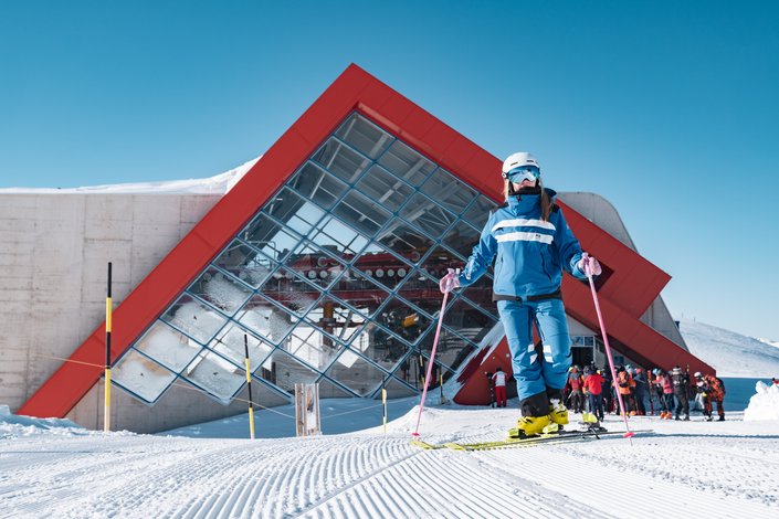 Start der Ski-Runde von Mona war im sogenannten Kitzbüheler Kernskigebiet am Hahnenkamm: Bergfahrt entweder mit der Hahnenkammbahn und dann weiter mit der Walde-Sesselbahn und über die Kapellenabfahrt in den Ehrenbachgraben oder Auffahrt mit der Fleckalmbahn und ebenfalls über die Kapellenabfahrt in den Ehrenbrachgraben. Von dort führen die Sesselbahnen Steinbergkogel und Kasereck zum Pengelstein. Mit der 3S-Bahn „überfliegen“ Sie den sogenannten Saukasergraben. Die sonnige Talsenabfahrt bringt Sie zu den nächsten Sesselbahnen: Mit dem Bärenbadkogel I und weiter mit dem Bärenbadkogel II sind Sie schon mitten im Jochberger Skigebiet von KitzSki.