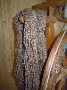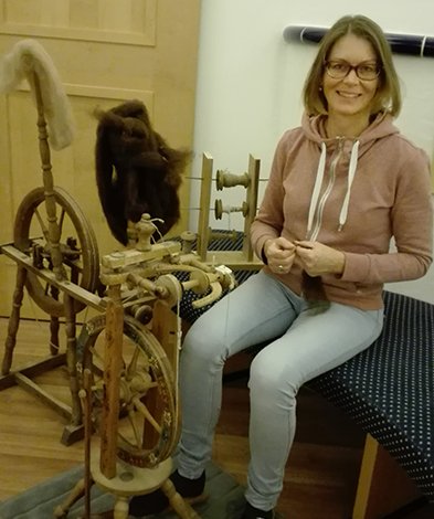 Sobald die Abende wieder länger werden, ist „spinnen“ die abendfüllende Tätigkeit für Martina. Sie nimmt einen Strang kardierter Rohwolle und spinnt und spinnt und spinnt einen langen dünnen Faden auf die Spule. Wenn die Spule endlich voll ist, wird diese durch eine leere ersetzt und das Spiel beginnt von vorne. Am Spinnrad ist Fingerfertigkeit und Geduld gefragt.