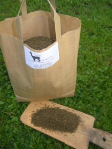 Der wertvolle Kot der Tiere wird als Naturdünger verwendet und soll künftig schädliche Kunstdünger ablösen. Der Kot hat einen sehr hohen Anteil an Kalium, Phosphor und Stickstoff und eignet sich wunderbar als Universaldünger. Manfred lässt den Kot an der Luft trocknen, bevor er ihn zweimal mahlt. Nach dem ersten Mahlen erhält er einen „Grobdünger“, der als Langzeitdünger zu verwenden ist. Nach dem zweiten Mahlen entsteht der „feine Dünger“. Sieht fast wie Kräutertee aus, sollte nicht verwechselt werden! Dieser kann für regelmäßige Düngung sämtlicher Pflanzen verwendet werden. Die Dosierung ist einfach, denn es gibt kein „Verbrennen“ der Pflanzen, wenn man zu viel davon nimmt. Und der Geruch erinnert an Heu und Kräuter. Kein Wunder: Manfreds Alpakas bekommen nur Gras und Heu und manchmal ein Leckerli nach einer Alpakawanderung.