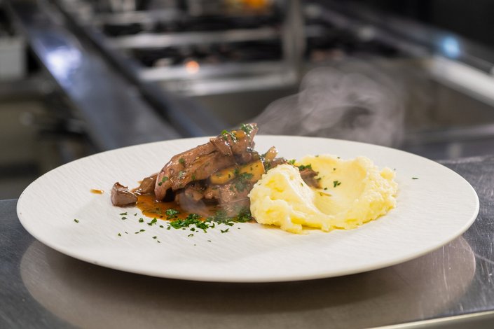 Immerse yourself in a moment of culinary delight that awakens all your senses. Tender veal liver, expertly seared, meets the refreshing elegance of sage-apple accompaniment. The liver melts in your mouth, its delicate texture harmonizing with the sage. The true magic, however, unfolds with the apple, which plays with gentle notes of sweetness and acidity, while the sage reveals its aromatic secrets.