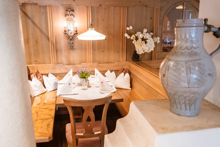 The charming Eggerwirt has been a Kitzbühel institution since the 17th century, offering a serene location in the heart of the city that's perfect for dining. Chef Raphael Degan and his team are dedicated to regional ingredients, delighting guests with Tyrolean specialties as well as classic Austrian dishes. Cozy rooms, a bright, sunny winter garden, and a flower-filled terrace invite you to linger and enjoy Austrian cuisine in the heart of Kitzbühel.