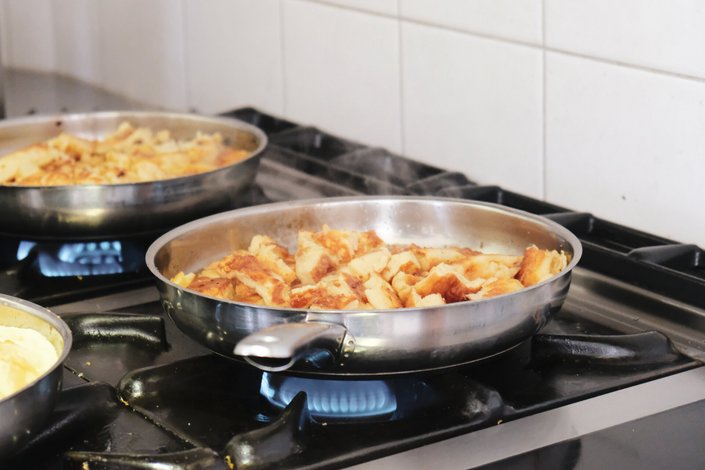 This Austrian classic is not only a popular winter treat but also fits perfectly into the Kitzbühel culinary autumn. The fresh moss berries—known as blueberries in Germany—are hand-picked by the host herself. Only the best berries make it into her renowned Kaiserschmarrn, which can also be served with raisins upon request. A feast for the eyes as well, each Kaiserschmarrn is served in the pan with a generous dusting of powdered sugar right at the table.