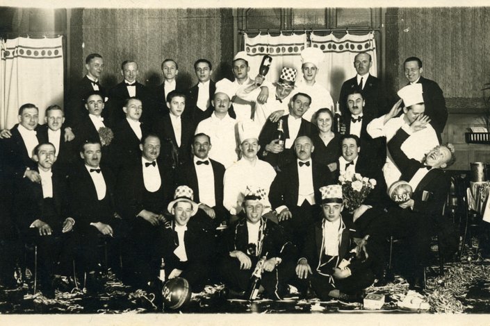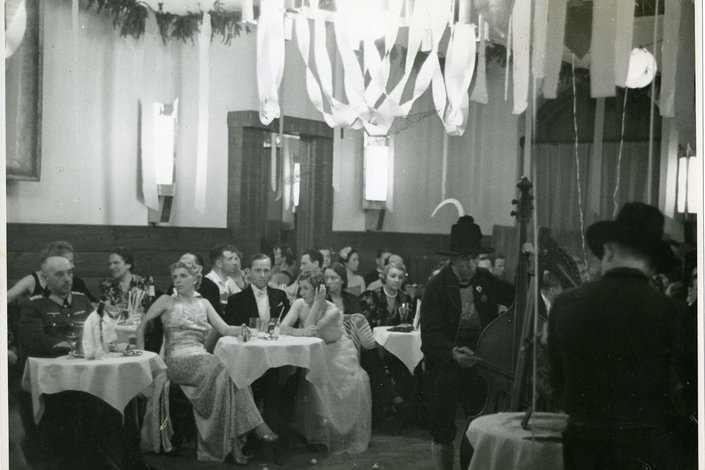 During that time, there were also grand balls and performances. Up to two or three balls per week! The social director, Teddy Haas, and his decorators did great work. For example, they transformed me into a zoo for the Apache Ball and prepared me for an African night: hours in paradise. Often, six orchestras played at the balls. Late at night, the night owls among the guests continued to celebrate in the Lumpenstüberl, a cozy bar in the basement.