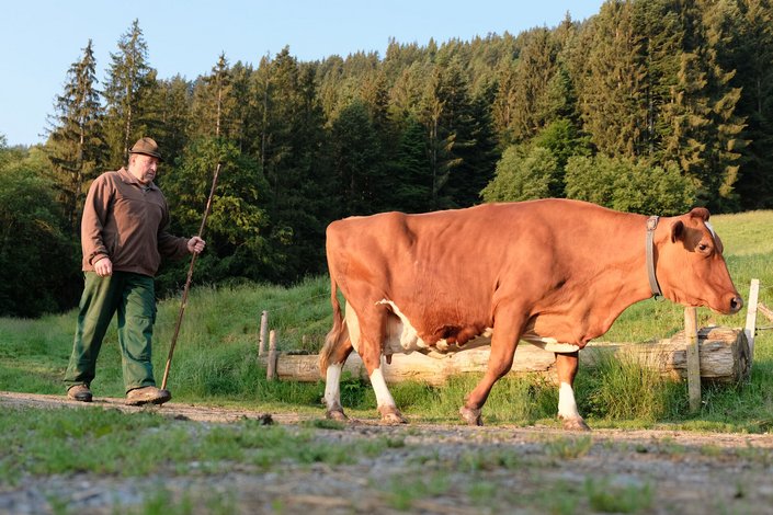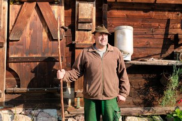 Gerhard spends the summer with his wife Lisi and his daughter Sonja between farm and alpine pasture. He is happy that his children also enjoy farming. His son Andreas also works on an alpine pasture in the summer and in Jochberg they still have an alp for young cattle. The next generation is thus secured.