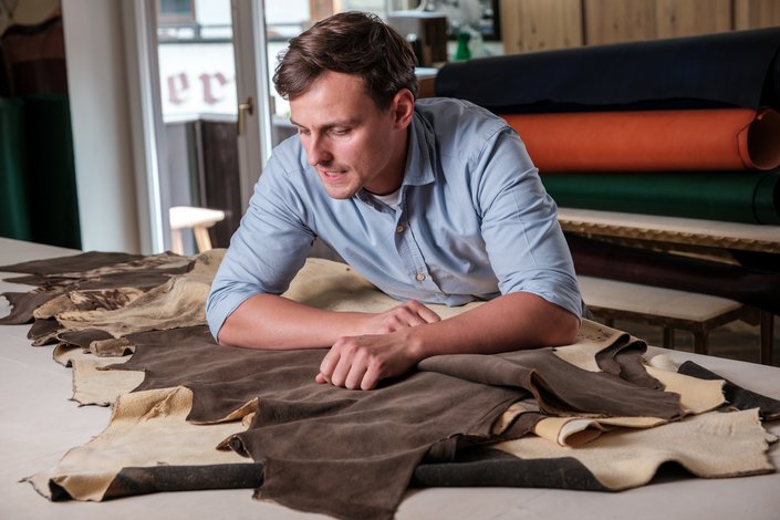 Matthäus Stern is not a trained tanner, and yet the craft has become second nature to him. He studied law, nearly completing his degree, before gradually working his way into the family business. Today, he is responsible for logistics, purchasing, and quality control of the hides – above all the chamois-tanned deerskin, the manufactory’s main material. From it are made, among other things, the famous leather trousers.