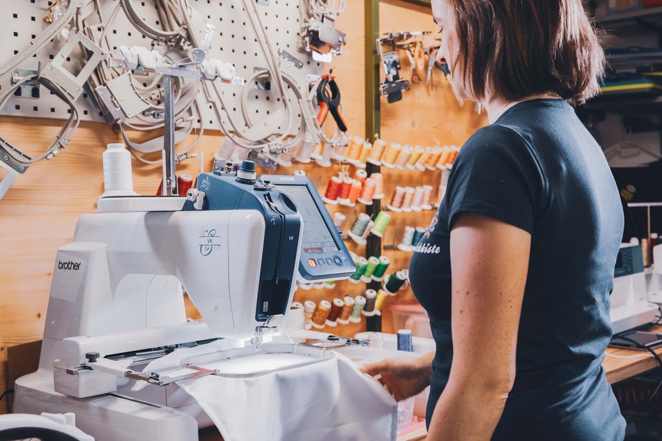 Michaela Hausberger learned sewing and creative work during her school years at the Agricultural School Weitau. In her later profession as a florist, Michaela loved the opportunity to create and let her ideas flow with flowers. The birth of her daughter prompted Michaela to work from home. The idea of the Stitching Box was born, and an initial small embroidery machine was placed in the utility room.