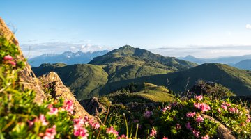 In summer, the slopes transform into a glowing sea of alpine roses. Those who listen closely will hear the whistling of marmots living among the grassy hillsides. For hikers and mountain bikers, the Southern Mountains are just as much a dream destination as they are for skiers and ski tourers in winter, when the landscape is cloaked in sparkling white.