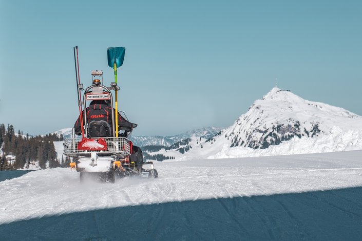 The rescue team on the mountain is also part of Hans-Peter Schwaiger's team. The info team and the rescue team comprise a total of 35 people who are out and about in the entire ski area. The info team starts in the morning at the Bergbahn AG Kitzbühel ticket offices to inform guests accordingly, to clarify any ambiguities immediately and to avoid bottlenecks at the ticket offices. By noon at the latest, the entire team is ready for action on the slopes...