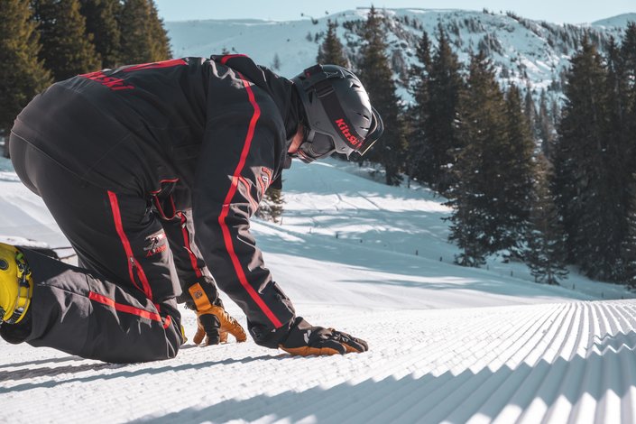 Hans-Peter Schwaiger has been with the Bergbahn AG Kitzbühel for over 30 years and is currently manager of the ski slopes in theso called core ski area and knows the ski slopes and the snow like almost no one else.