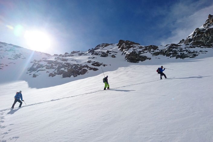 The second block, the so-called national ski instructor training, contains three parts and lasts in total about 5 weeks (including entrance examination). After this training, one is authorized to carry out off-piste skiing with guests in the vicinity of the lifts. The top class is then the state ski instructor training with approx. 80 teaching days. If you want to spend even more time in off-piste terrain and also do ski tours with your guests, you can apply for the so-called ski guide training.