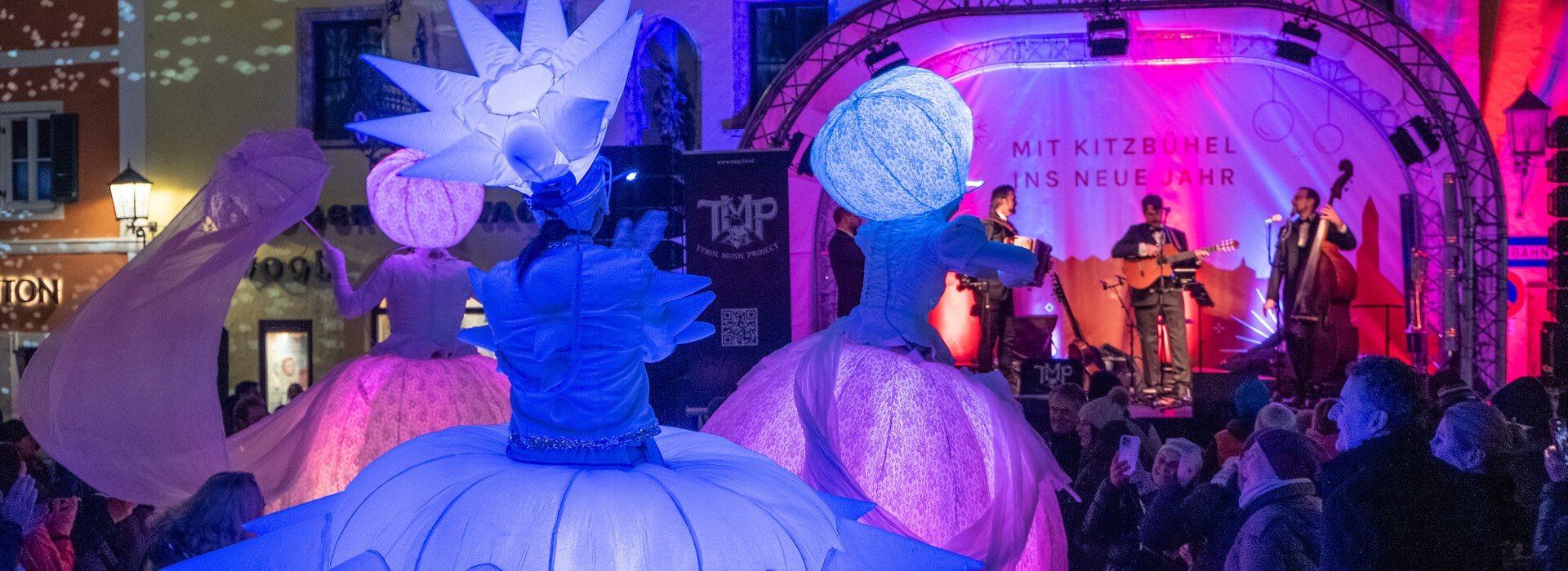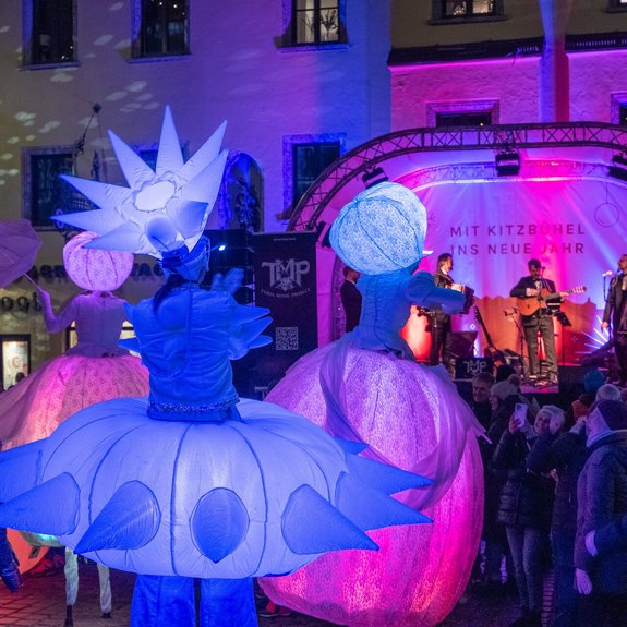 We will welcome the New Year together on 1 January 2026 with a special New Year's greeting from the Kitzbühel Stadtmusik. Look forward to a diverse music program and a dazzling LED performance by stilt walkers in the Hinterstadt starting at 4 p.m.