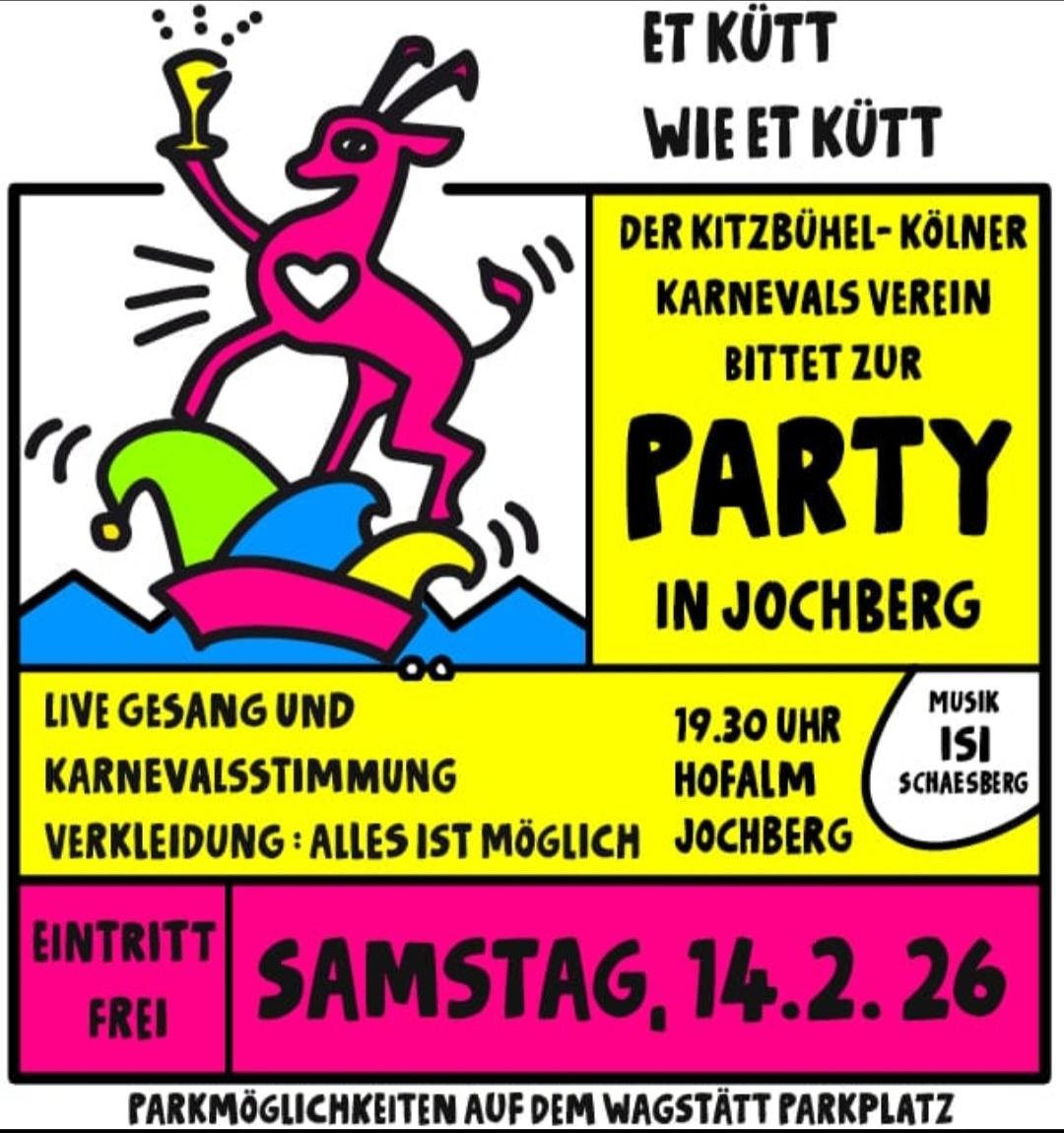Under the motto "It comes as it comes". Live singing with Isi Schaesberg and the best Carnival atmosphere. Costume: Anything is possible. Parking is available at the Wagstättbahn. Admission free.