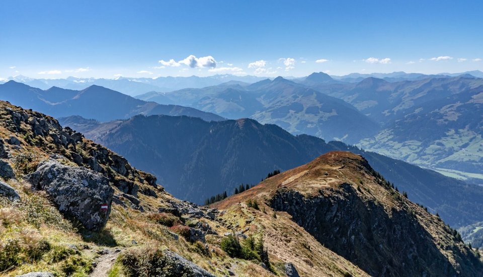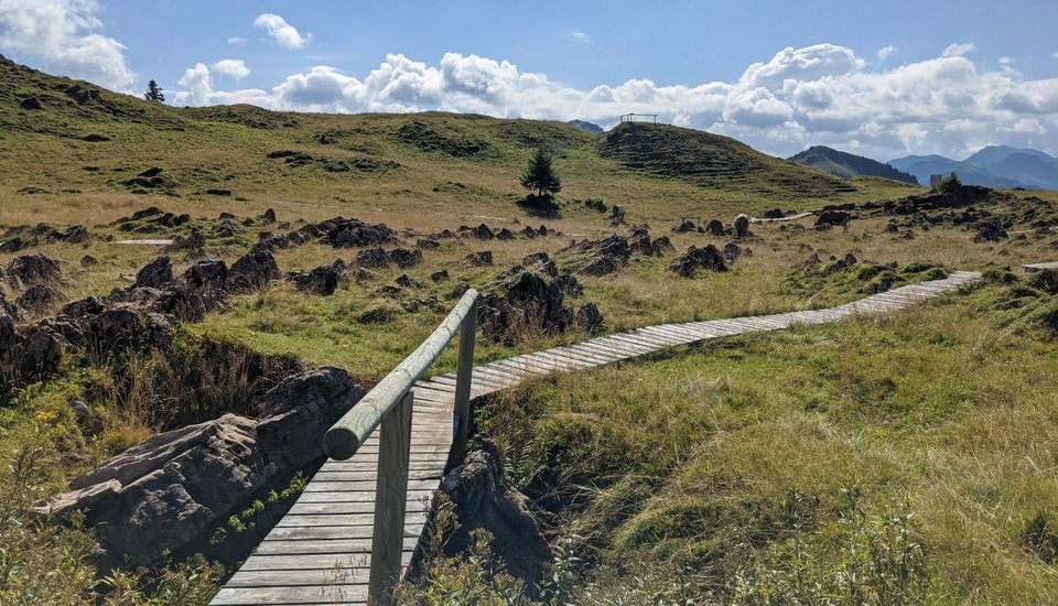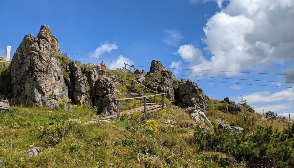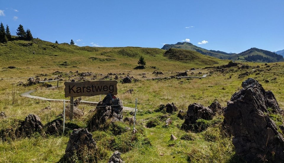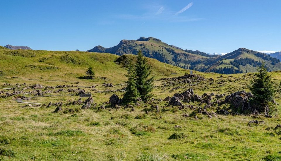 The Karstweg Trail is an easy circular walk on the Kitzbüheler Horn that winds through stunning scenery with views across the entire Kitzbühel region. The route starts at the Alpenhaus, the top station of the Hornbahn II, and leads across the undulating terrain along the edge of the basin to the geological highlight: the karst landscape, which has formed over thousands of years.