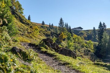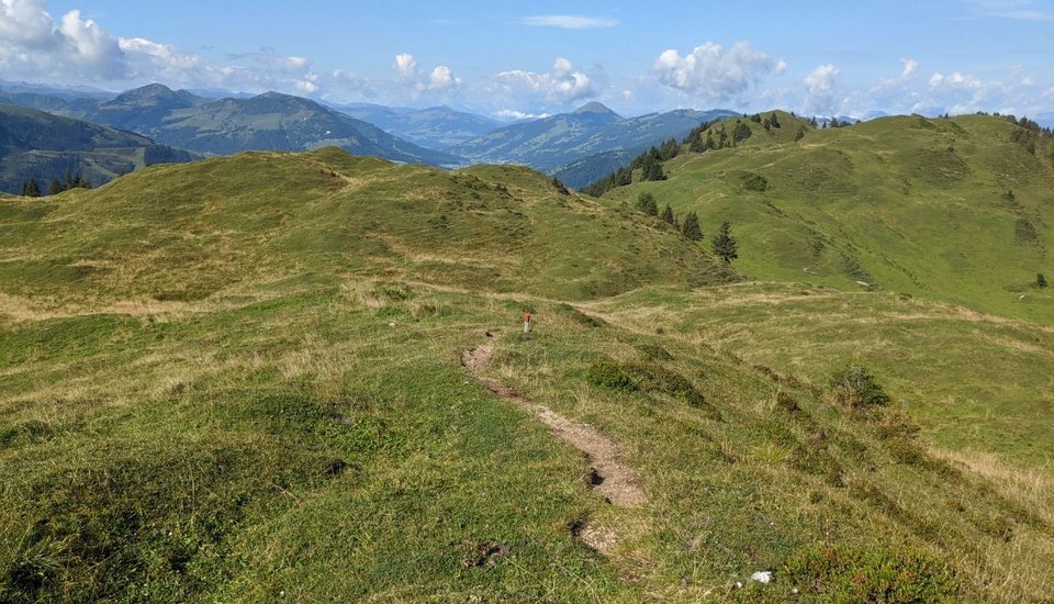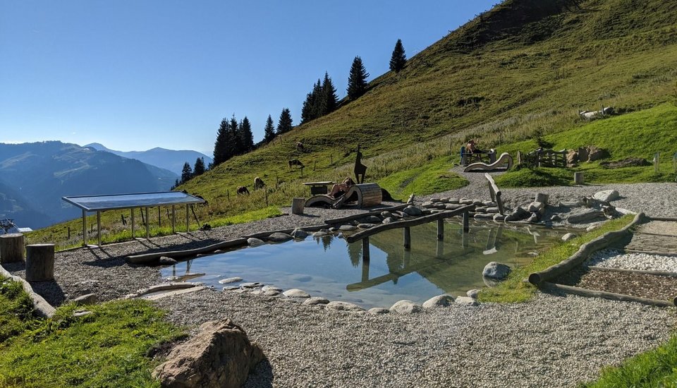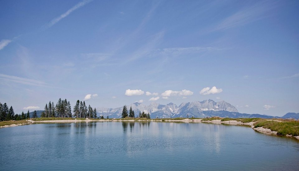 This moderately difficult route starts at the summit of the Kitzbüheler Horn, next to the top station of the Gipfelbahn gondola, and leads across to Hochetzkogel and the Bichlalm chairlift. Along the way, you can expect stunning views and several highlights, such as the panoramic view from the summit of the Horn, the alpine flower garden, Hornköpfl snow cannon lake, the summit of Hochetzkogel and the Bichlalm Kneipp. Refreshments are available at the Gipfelhaus, the Hornköpflhütte and the Bichlalm. With just a short detour, you can also visit the Lämmerbichlalm.