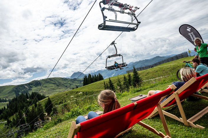 A beloved spot for families over the years! Found at the beginning of the Sonnenrast Trails and directly opposite the Fleckalm gondola, it's the perfect place to kick off or wind down after a day of mountain fun. With a small play area, plenty of outdoor seating, and a tasty selection of self-serve dishes, it's a welcoming spot for everyone to enjoy.