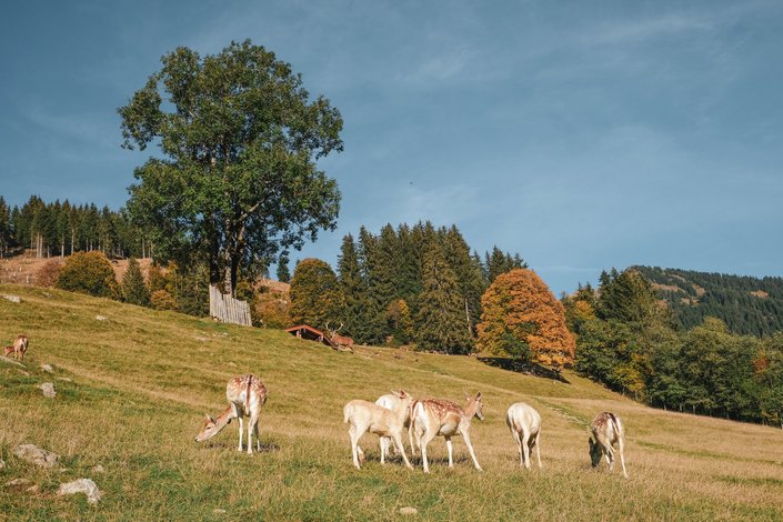 The Aurach Wildlife Park is a truly beautiful piece of nature above the small village of Aurach. Lovingly tended for several generations by the Pletzer family, the largest wild animal outdoor enclosure in Tyrol impresses with over 350 animals. From red deer to yaks and kangaroos - a wide range of animal species have found a home here. New fluffy friends can be found in the petting stall. Delicious delicacies and a good cup of coffee in the Brandnerhofstube round off the excursion.