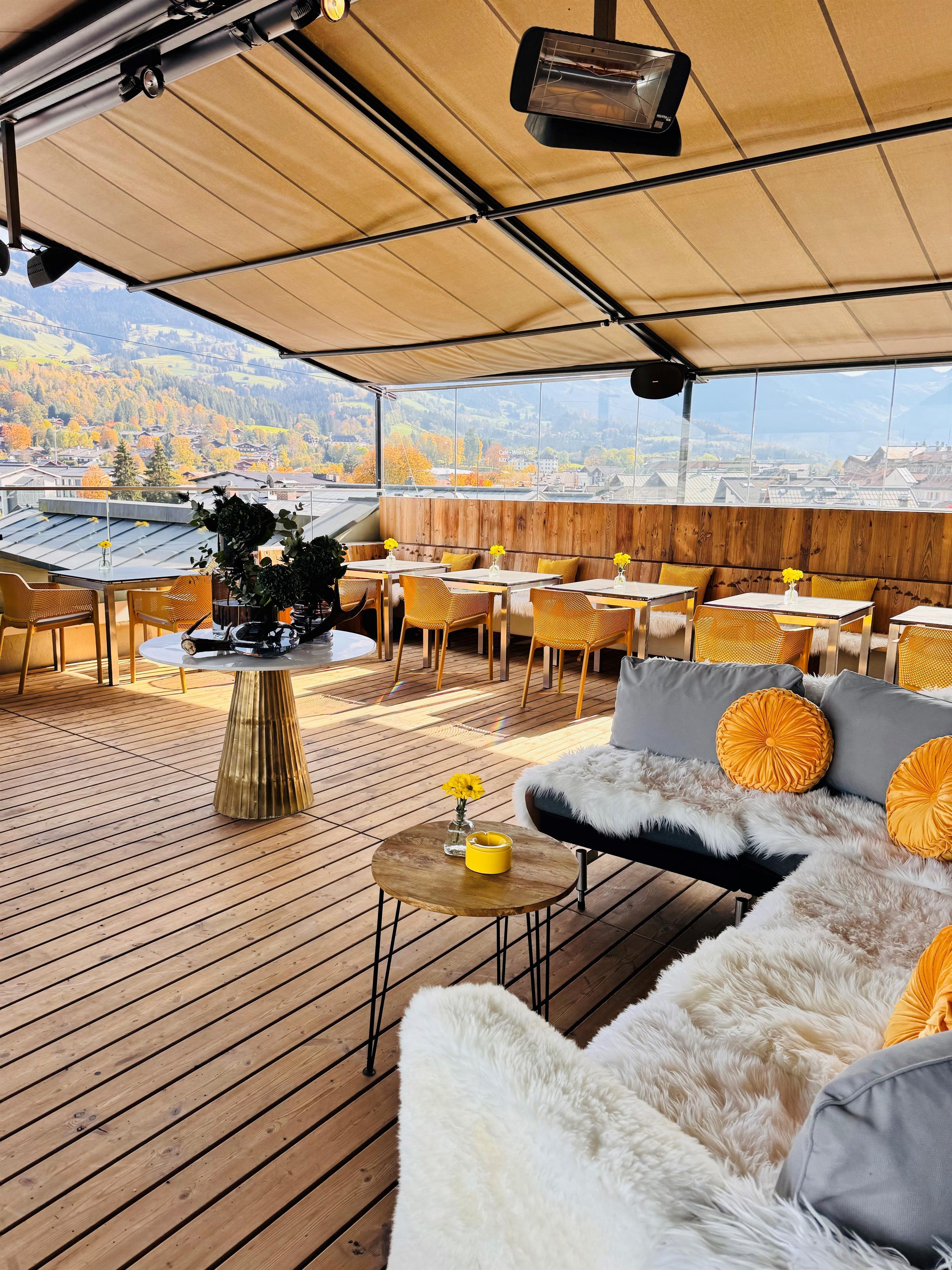 The KAHO Rooftop at Vorderstadt 18 in Kitzbühel offers a stylish atmosphere, first-class cuisine and stunning views.