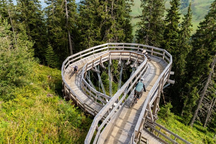 Hahnenkamm Trail – Tirol’s longest flow trail. Fast, fun, and packed with flow. You should have a solid riding position and know how to brake and corner on steeper terrain.
