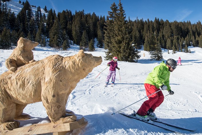 Another highlight is Bear Land, featuring life-size hand-carved bears and exciting challenges such as slalom courses and mini gates, perfect for learning fun.