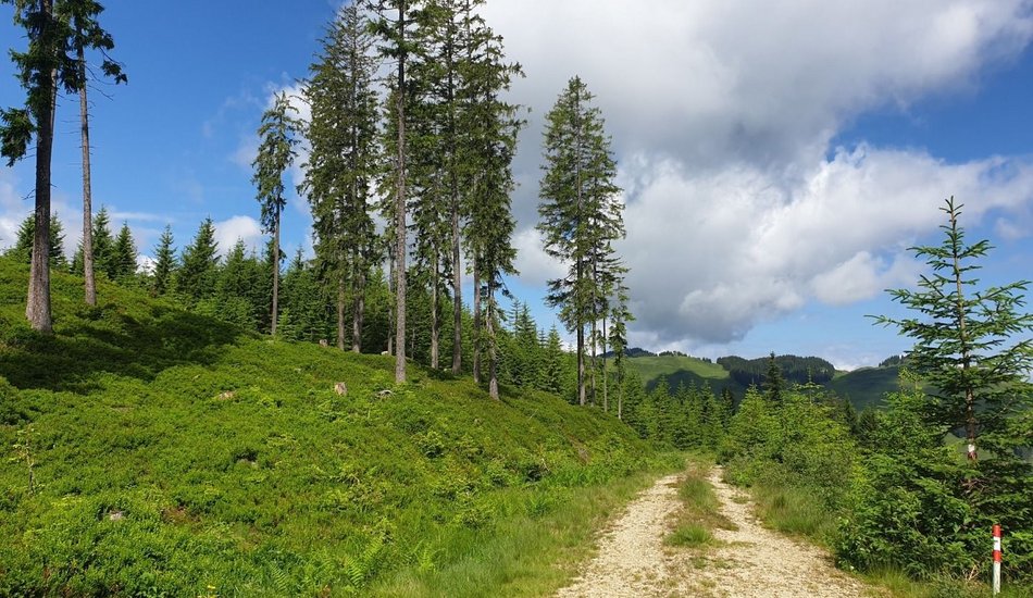The route starts in the Spertendorf district of Kirchberg in Tirol and initially runs about 4 km on the paved road Sonnbergweg uphill to the Filzerhof, where it joins the forest path. For a short stretch the route becomes steeper, easing off again for the last kilometers leading steadily uphill through the forest to the highest point of the tour. Near the top there is a view point looking across to the Wilder Kaiser, where there is also the option to join MTB route 288 to Brixen im Thale. The way back down is on an asphalt road towards Gasthof Ruetzen going over the Hinterer Sonnberg back to Spertendorf.