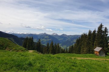 The starting point of this tour is the car park of the gondola lift in Waidring. From the starting point, drive through the centre of the village on the main road in the direction of the campsite. In the left-hand bend before the campsite, continue straight on in the direction of Strub. Approx. 300 m after the "Ascherbauer" turn onto the Panoramaweg (Schmid-Zabirow-Hütte). Now the difficult part of the route begins. The forest path winds steeply uphill in long curves through the forest to the Kitzgraben hut. Now the trail goes steeply downhill towards Steinberggraben - Teufelsklamm. At the car park near GH "Adolari" (refreshment stop), the route turns right onto the "Steinbergrunde" cycle path back to Waidring.