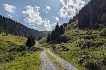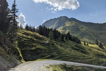 A route from Jochberg past the Aubachgraben, following the stream up the valley to Gauxjoch and then going across to the Sonnalm. The route starts off on tarmac changing to gravel after about 3km.