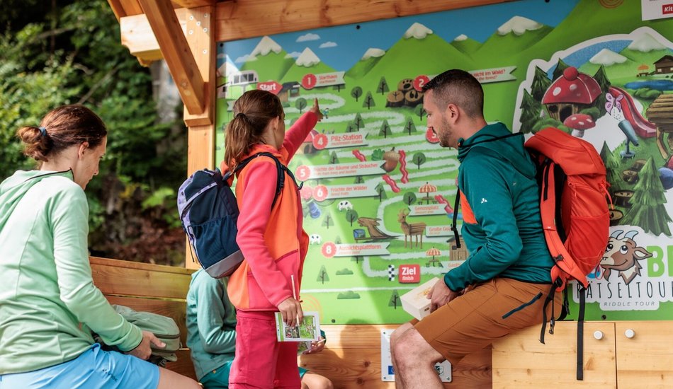 From the train station you will walk through the village centre towards Aschau. After a good half an hour you will arrive at the valley station of the Gaisberglift chairlift, where you can pick up the booklet for the upcoming puzzle tour. If you fill it in during the hike you'll receive a little surprise.