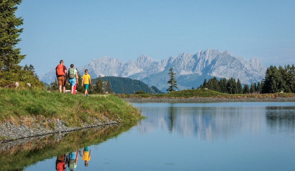 Walk past the church and continue up the road to the beautiful Lauchsee lake. Due to its boggy water, it has a brownish colour and has pleasant bathing temperatures early in the summer. You walk past beautiful farms to the end of the valley and turn left at one of the last farms "Schwarzhäusl" in the direction of Streuböden. The serpentine forest road winds its way first through the forest, then across open alpine pastures, offering wonderful views of the surrounding mountain peaks time and again. Zillstatt is the name of this valley cut that you hike through and which lies below the Wildseeloder area.
