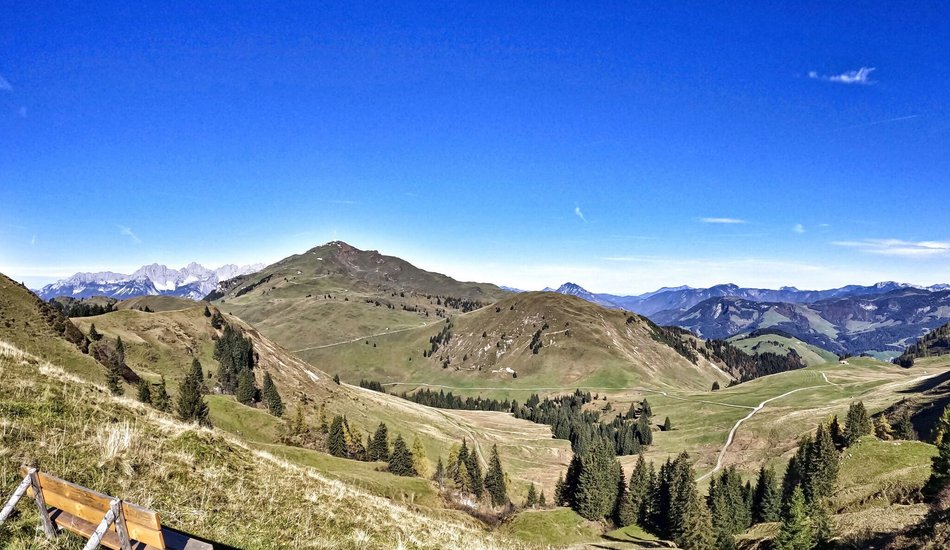 This trail takes advantage of the excellent infrastructure of KitzSki, saving significant elevation gain and providing a wonderful experience for less-trained trail runners and beginners. Start by taking the Hornbahn lift to Alpenhaus. From there, follow the contour lines on beautiful yet technically easy trails towards Bichalm.
