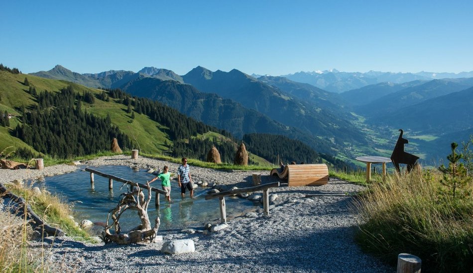 This hike starts at the valley station of the Bichlalm lift. Follow the road towards Rosi's Sonnbergstuben. You can take your first rest here. The hike continues along a gravel path through Oberaigen up to the Bichlalm. Here, a wonderful Kneipp basin loads the stressed feet into the cool water. After a refreshment on the Bichlalm, you can take the Bichlalm lift back up again.