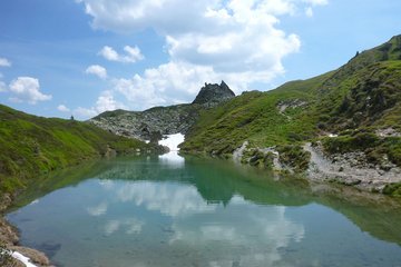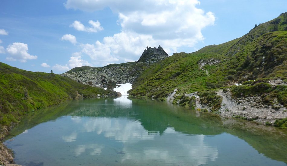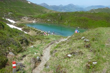From Schering car park, follow the signs to the 400-year-old Bruggeralm mountain hut. The route is circular and first leads along the alpine road towards Gaux-Niederalm, Gaux-Hochalm and Gauxjoch. The hike then continues along a hiking trail below the Kleiner Rettenstein mountain and leads to the idyllic Blaue Lacke lake. The route back goes via Talsenhöhe to the 3-S-Bahn cable car and, from there, back to the Bruggeralm mountain hut where you can enjoy a break before hiking the last stretch back to the starting point.
