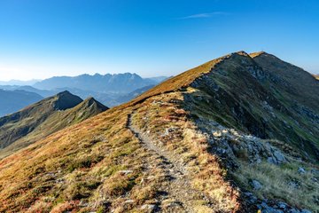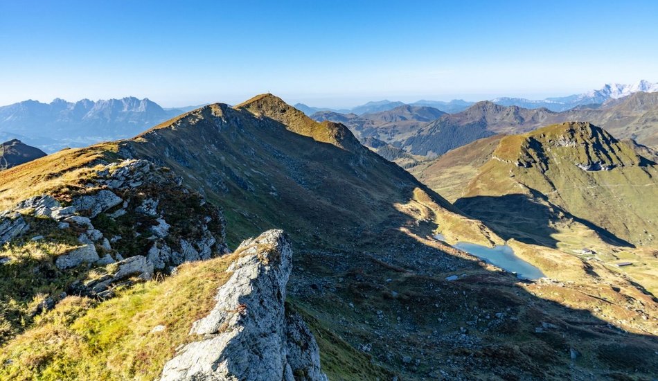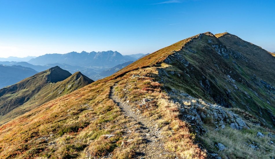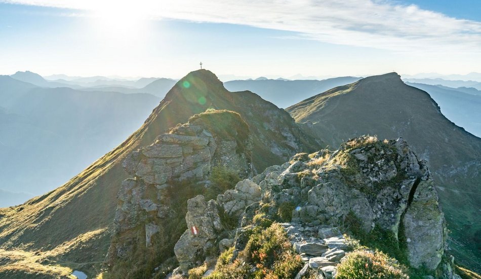 The 9-summit experience trail starts from Bochumer Hütte car park and passes the "Bochumer Hütte" mountain hut on the way up to the first summit, the Laubkogel. From there it runs along the ridge to Hahnenkampel, Rauber and Saalkogel. The subsequent climb up to the 5th summit , the Tristkogel, guarantees unique views of the surrounding mountains. After a little refreshment the route leads uphill towards the Torsee lake and the Teufelssprung summit. The hike continues via the 7th summit, the Gamshag, which leads to the Kleiner Schütz and the Schützkogel (Großer Schütz}. The route back down passes the Schlichtenalm and the Niederkaseralm mountain huts before returning to the starting point.