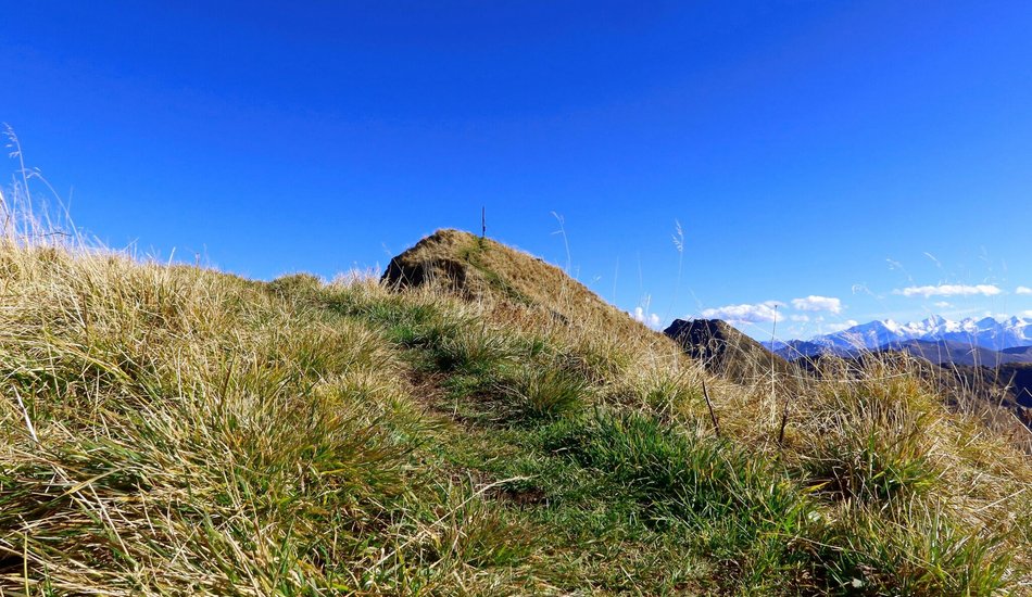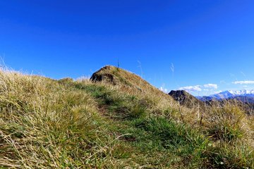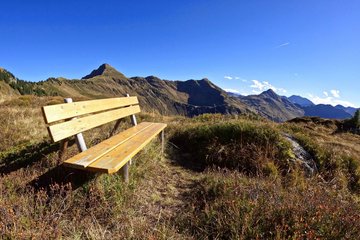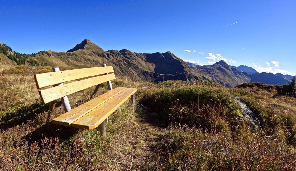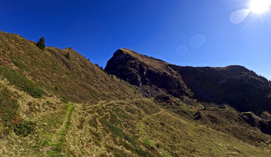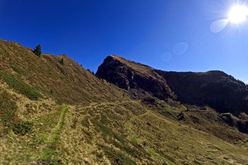 Follow the signs to Gebrajoch, maintaining the contour line. Near Gebrajoch, adhere to the GPX track as the path becomes faint. At the Joch, markings reappear, leading to a steep ascent of Gebra, requiring sure-footedness and assisted by safety ropes. Just below the summit, the trail eases, allowing for a restful break on a bench at the Gebra peak with panoramic views.