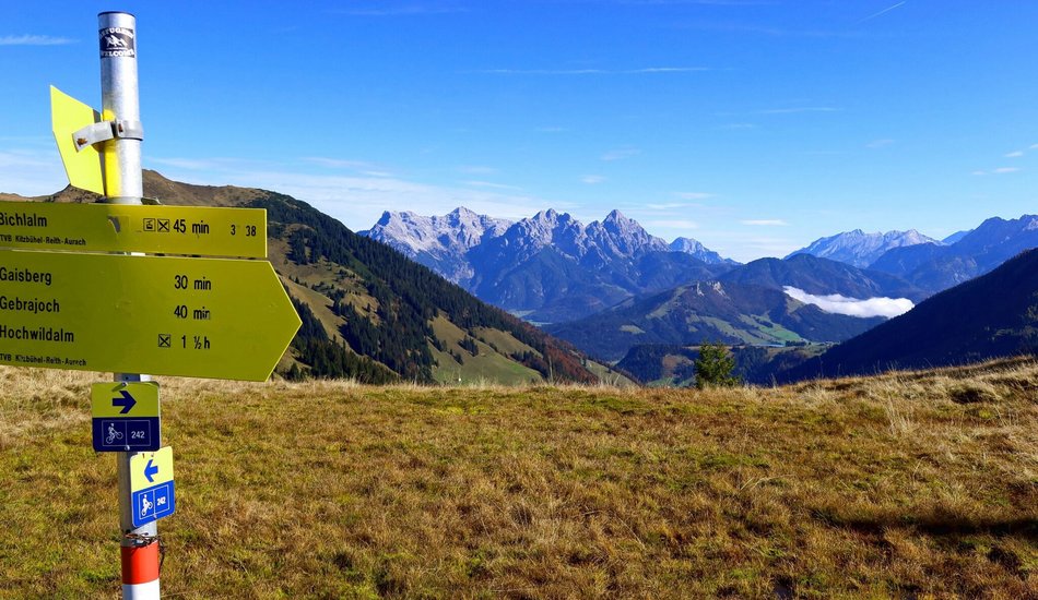 This route leverages the excellent KitzSki infrastructure. Take the Bichlalm lift to the Bichlalm hut, placing you directly in Kitzbühel's trail paradise. Head south towards Hochwildalm and Gaisberg on flowy trails, enjoying stunning valley views and vistas of the Hohe Tauern to the south. Occasionally, you’ll catch glimpses of the Leoganger and Lofer Steinberge to the north.
