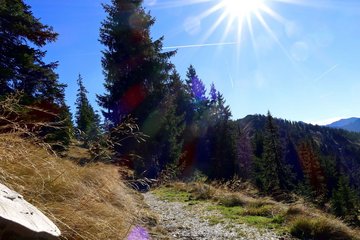 Descend to Hochwildalm and continue towards Aurach via the wildlife park. From Aurach's village center, climb briefly before alternating between trails and asphalt back to the Bichlalm lift valley station.