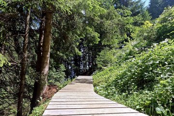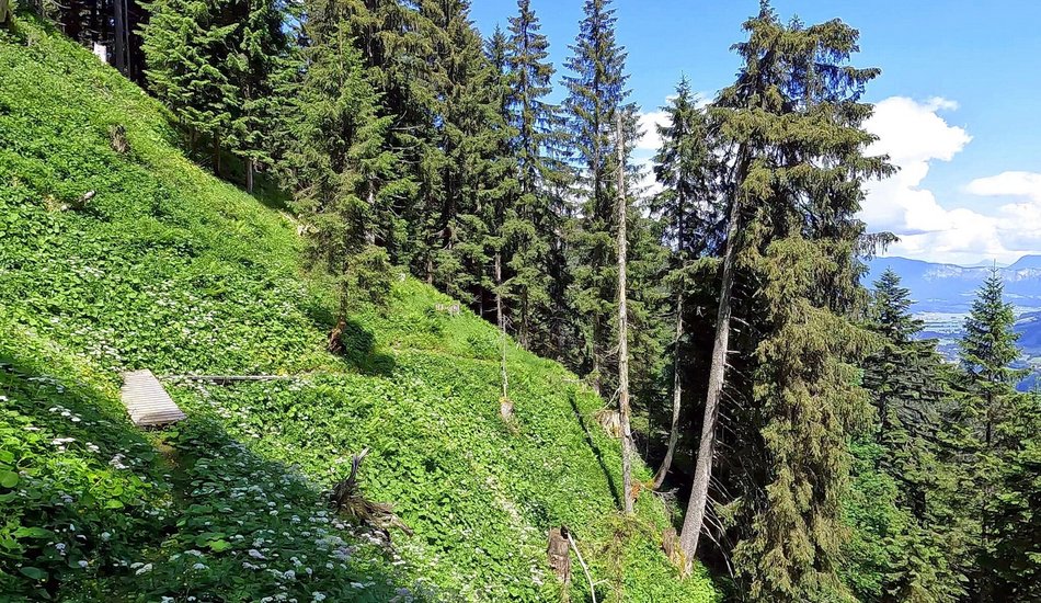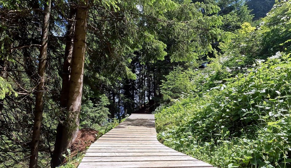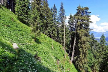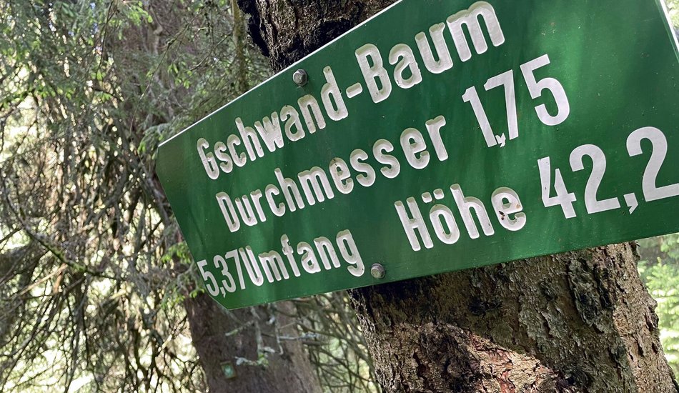 Follow the signs to Gschwandbaum, traversing alpine meadows and then a forest until you reach an impressive natural monument: a spruce tree with a diameter of 1.75 meters and a height of 42.2 meters. Return along the same trail until just past Malern Alm, then turn left towards Einsiedelei. From there, a fantastic downhill trail leads back to the valley. After passing under the railway, return to the starting point. This loop can be run both clockwise and counterclockwise.
