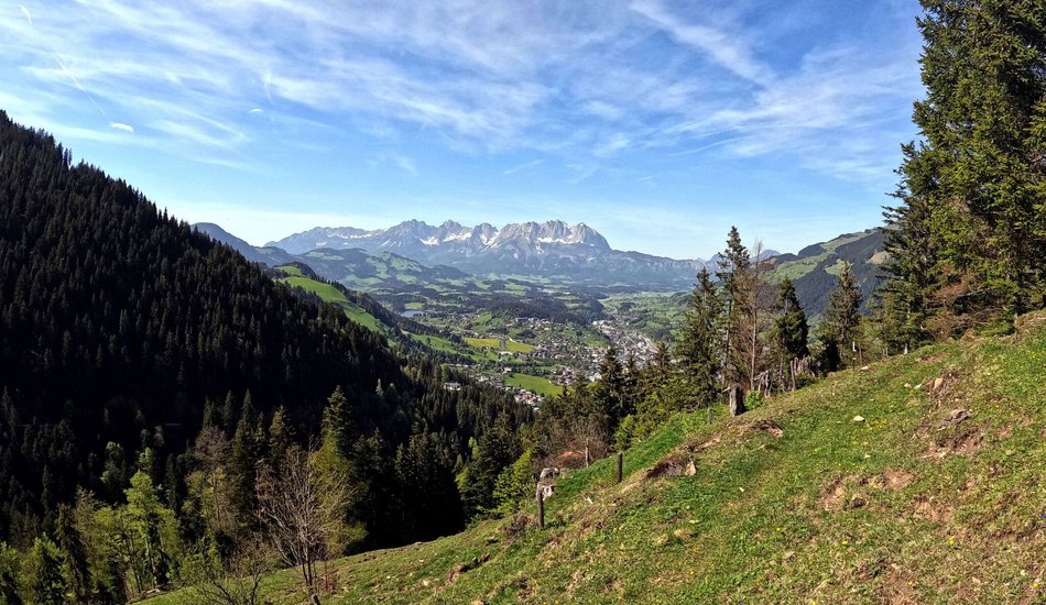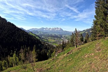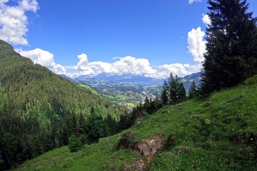 Starting at the Hahnenkamm valley station, head south along the base of the railway. Initially, an asphalt road takes you through the tranquil Malern district. From there, a challenging trail climbs towards Malern Alm, requiring careful pacing. At Malern Alm, enjoy a stunning view of the town and the Wilder Kaiser.