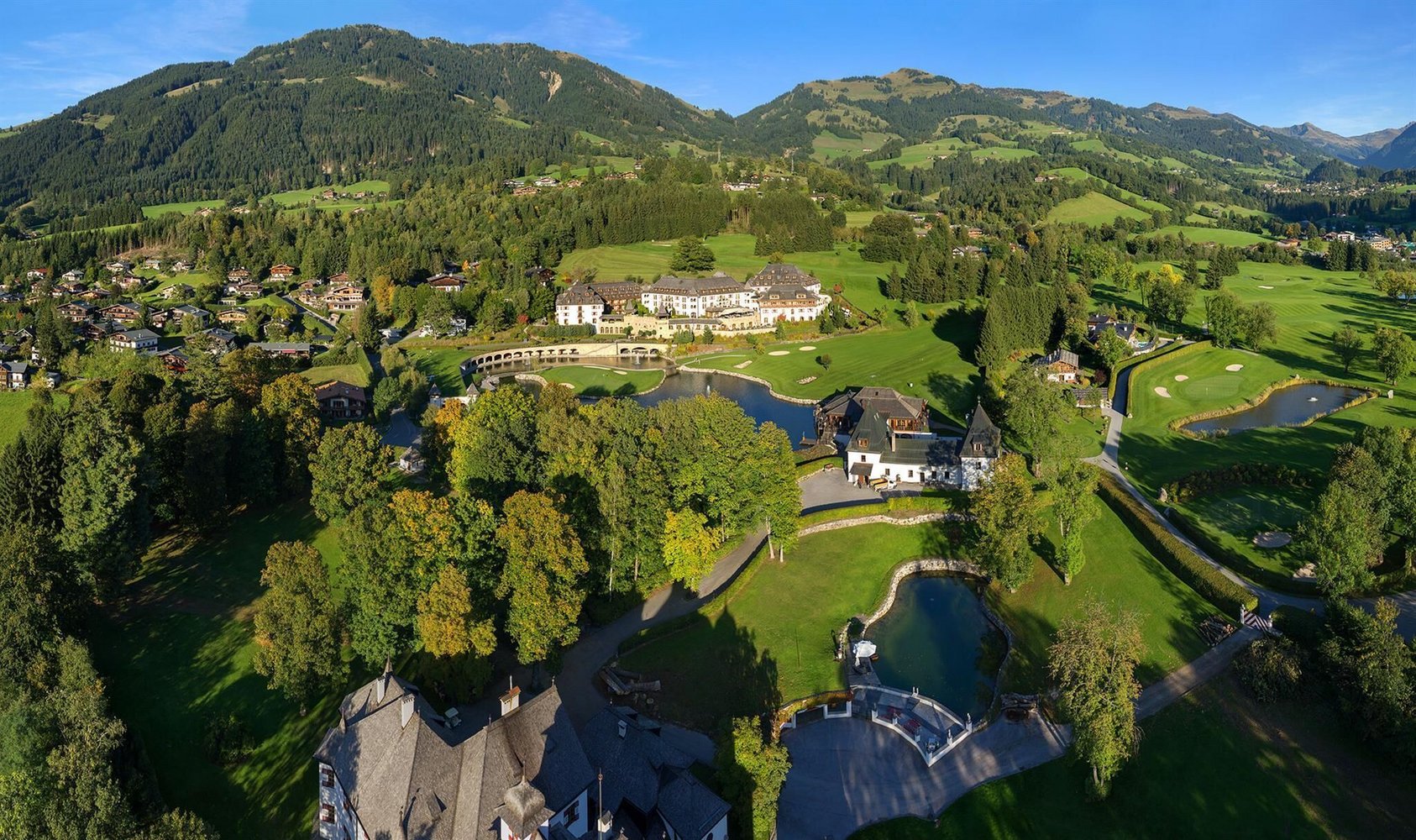 The Kitzbühel Golf Club opened back in 1955. Fifty years after that, the entire facility was completely refurbished and converted into a standard par 70 golf course with PGA quality, plenty of water and wonderful old trees perfectly integrated into the course’s design. The first tee and ninth green are located right near the club terrace and the 5-star club restaurant offers great meals at reasonable prices. Green fee guests can change clothes and shower at the A-ROSA hotel. Putting and chipping greens and the bunker offer optimal conditions for practising and improving your game. Green fee guests: Please make reservations for starting times in the Hotel Resort A-ROSA (T +43 (0) 5356 65 660 891), or visit golf.kiz@arosa.de Entrance in the underground car park. The green fee sales/pro shop is located in the A-ROSA hotel.