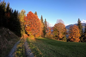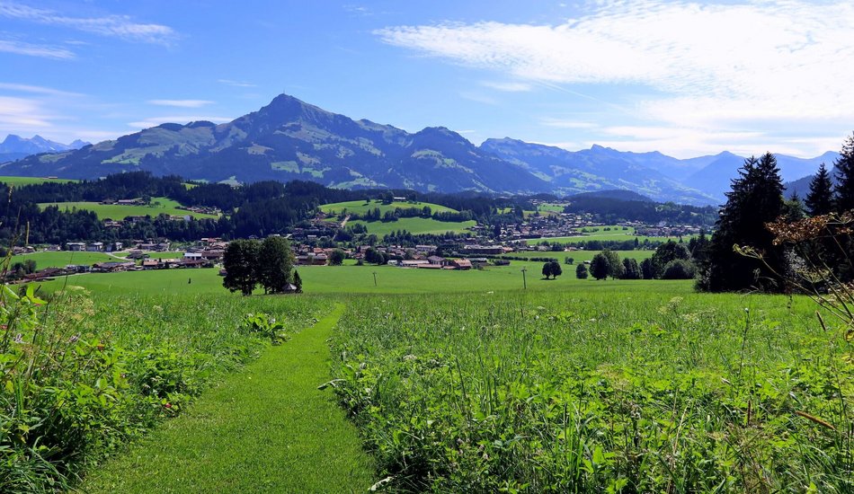 Start the Höhenweg Trail in the Kitzbühel holiday village of Reith, beginning at the church. After a few meters, join the trail with a gentle incline leading into the forest. Be sure to look back occasionally during the ascent for beautiful views of Reith and the Kitzbühel basin. At Scharwandalm, follow the trail left and adhere to the "Höhenweg" signs. The trail merges into a forest road, which you follow downhill towards the valley, guided by the "Hennleiten" signs.