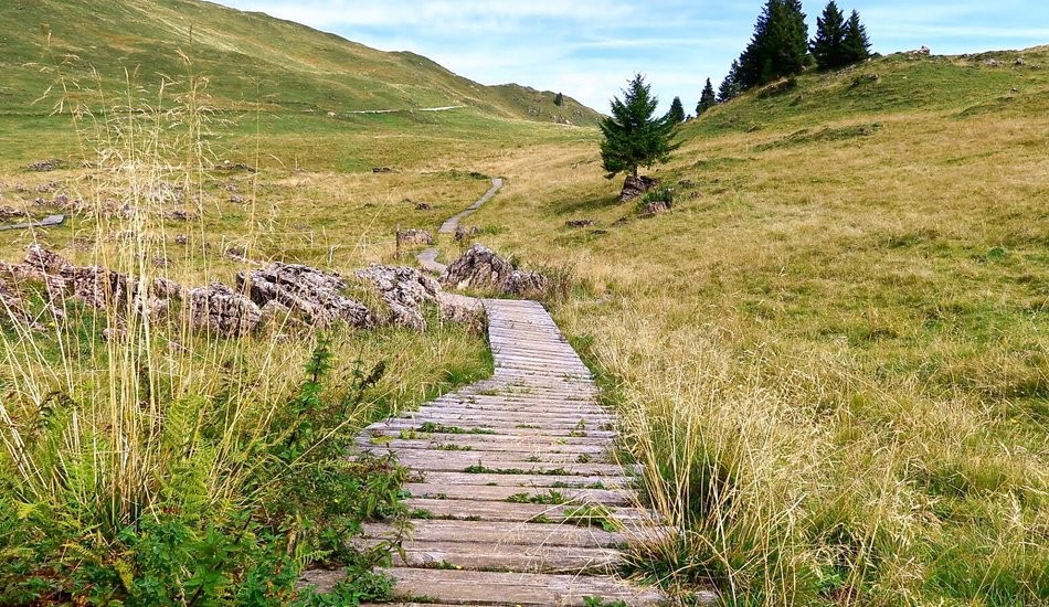 Continue on a flowy trail heading south towards the Karstweg. This path winds through an ancient karst area known as "Wiener Stadt," featuring sections that cross wooden bridges. At the end of the Karstweg, return to Alpenhaus, where you can enjoy refreshments with a fantastic view before taking the gondola back down to the valley.