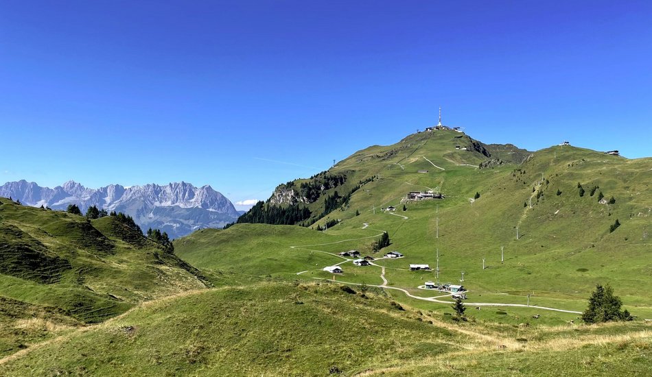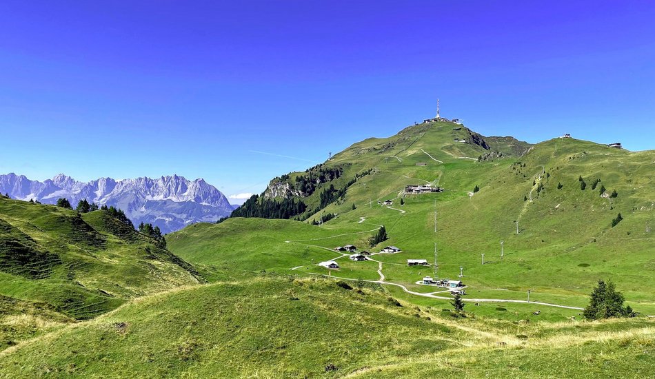 Take advantage of KitzSki's excellent infrastructure, which saves significant elevation gain and provides a pleasant experience for less-trained trail runners and beginners. Start by taking the Hornbahn lift to Alpenhaus. From there, follow a short stretch of asphalt road and then a trail descending into the Trattalmmulde and further onto the Wilden Haag, a ridge with stunning views of Kitzbühel and the Hohe Tauern.
