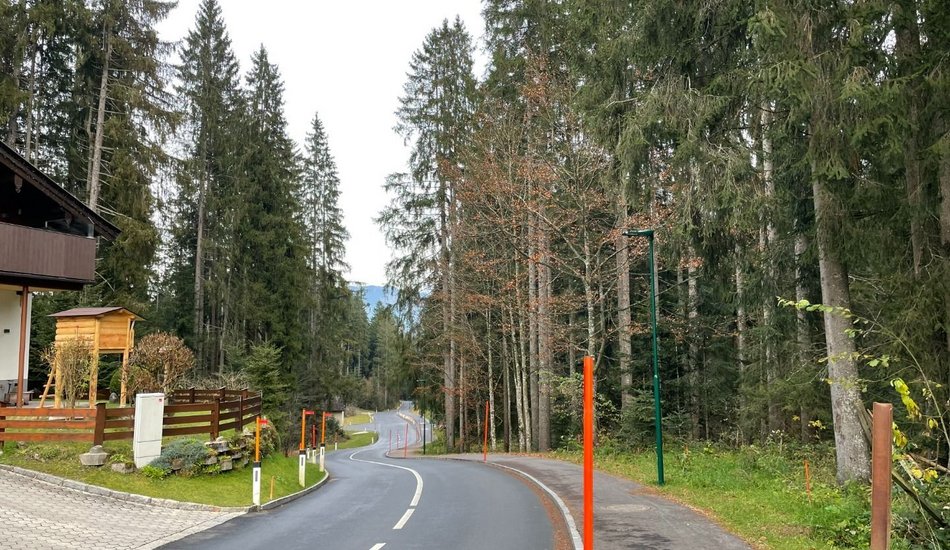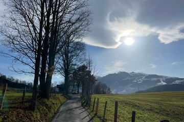 From the town centre follow the Schwarzseestraße in a westerly direction. Then turn towards Reith bei Kitzbühel (Reither Landesstraße) and onwards in the direction of Stanglwirt | Going. At Gasthof Reinache turn left onto the narrow Rerobichlstraße and follow the moderately steep route to the mountain classification at Bichlach. From the crest, its a rapid downhill until just before the centre of Obendorf, via the Dorfbachweg past the districts of Sperten und Weitau to St. Johann in Tirol. Shortly before the centre of St. Johann in Tirol turn right towards the St. Johann cable cars. Cross over the railway track, continue along the road past the Egger company on your left, then follow the beautiful hillside Römerweg. Near Oberndorf | Penzing navigate a few kilometres of unpaved Römerweg over a small mountain classification (Siedlung Haslach), then further along the Römerweg passing glorious farm houses. Under the Hornbahn lift and past the hospital, continue along the hillside. At the Traunsteinerweg go through the underpass and finally back to Kitzbühel town centre.