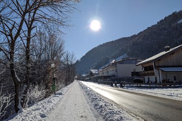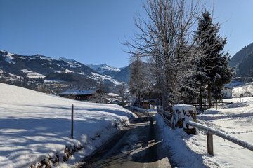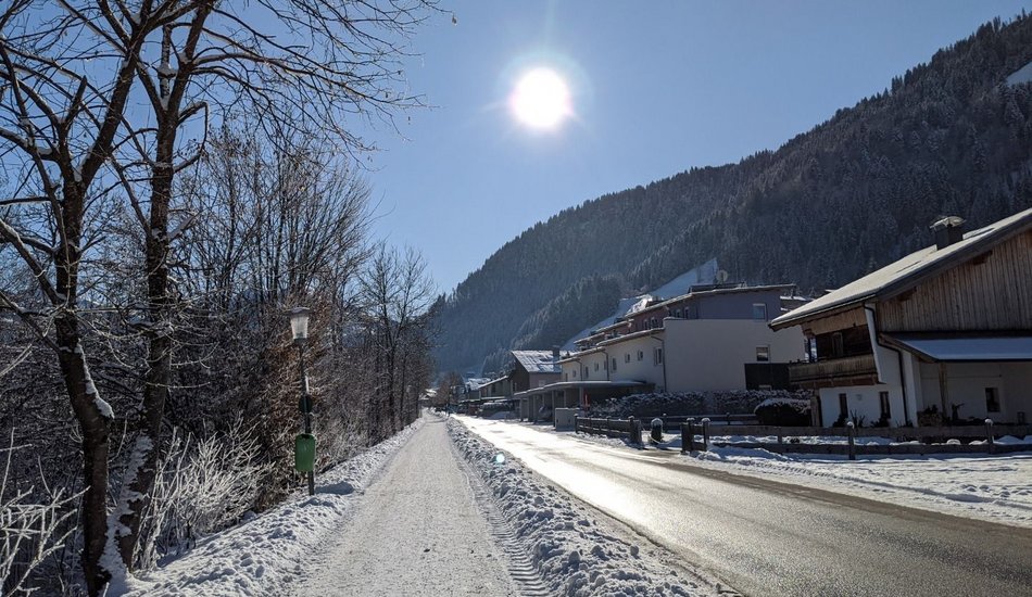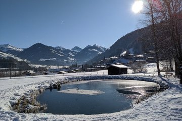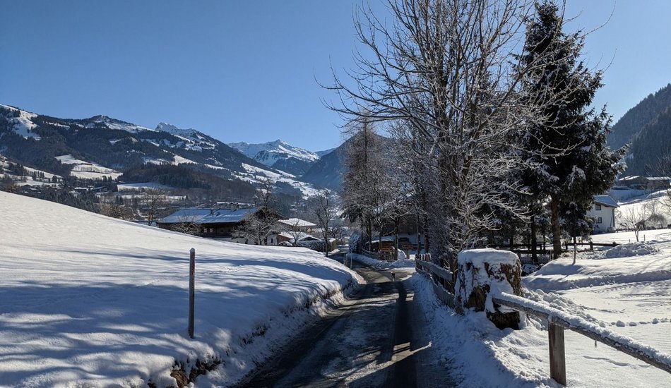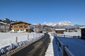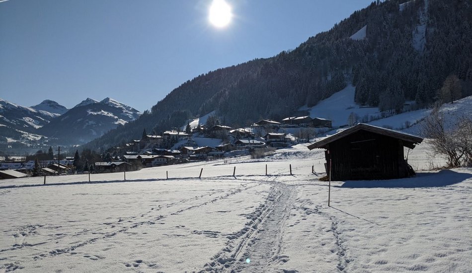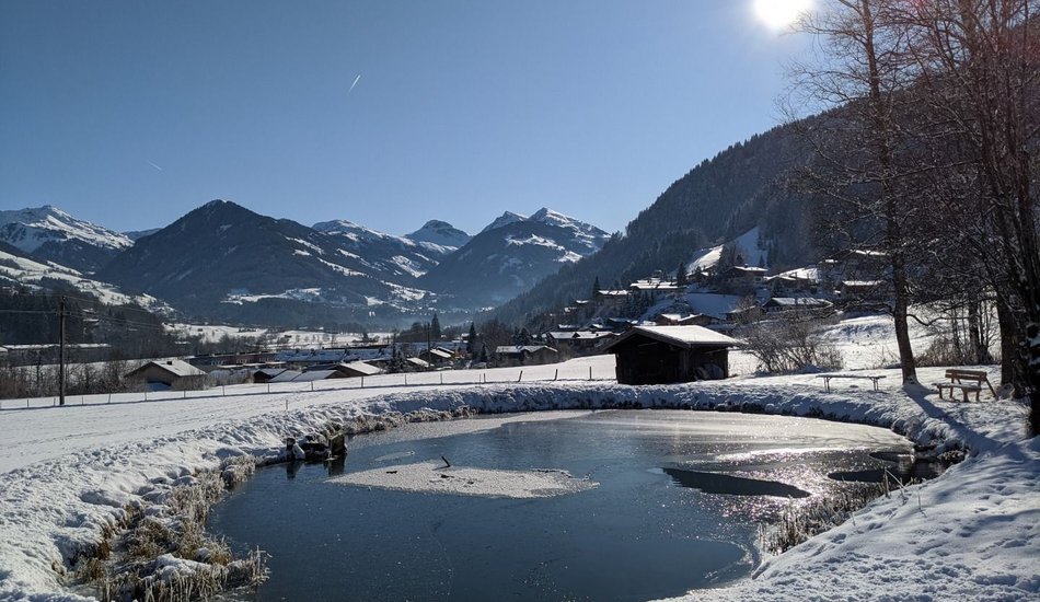 At the tennis stadium (parking) we cross the main street, over the bridge of the Kitzbüheler Ache and come along to the Framhouse Einfang where we come across the signpost that leads us towards Malerndörfl over a narrow meadow path to the Malern district of Kitzbühel. From there we follow the signs towards Kitzbühel, which leads us back to the tennis stadium.