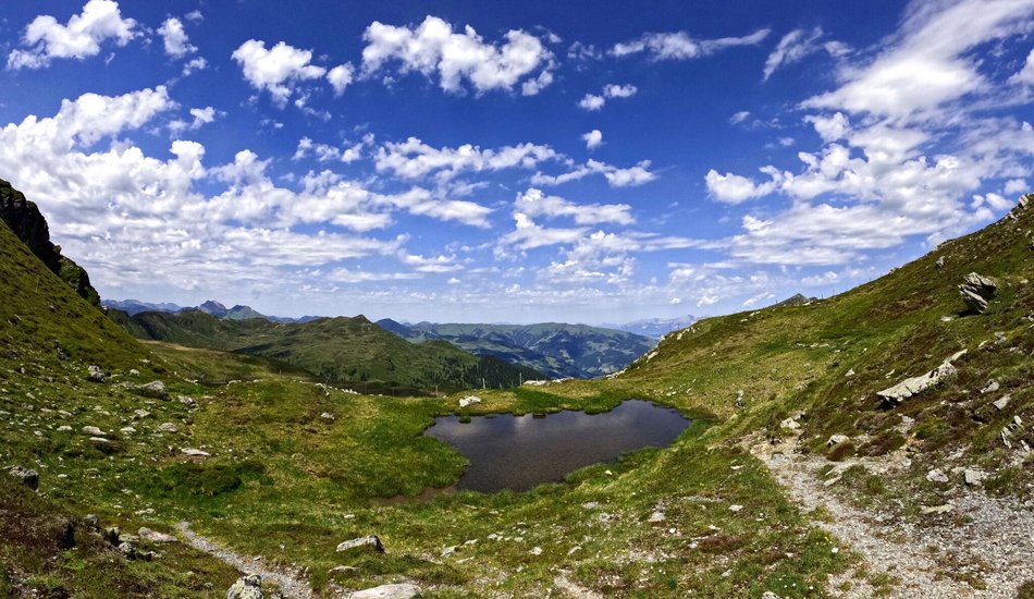 The trail begins by passing Kitzbüheler Horn, then heads into the southern mountains of Kitzbühel. Here, you’ll encounter Tristkogel, one of the most coveted photo spots, and Geisstein, the highest grassy mountain in the Kitzbühel Alps, before descending via Sintersbach gorge back into the valley. From Jochberg, the route continues towards Wagstädt and Blaue Lacke (Blue Lake), offering views of Kleiner (small) and Großer (Big) Rettenstein Mountains, and traversing the KitzSki area multiple times.